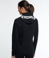 Superdry Gym Tech Cowl dameshoodie. Deze hoodie van ademende en technische gebonden jersey heeft één voorzak met Superdry Sport opdruk op de ritsen en een elastisch trekkoord in de capuchonkraag. De hoodie is afgewerkt met Superdry Sport reliëfopdruk achter op de capuchon en subtiele Superdry Sport logo's op de zomen, en is ontworpen om buiten in te sporten.