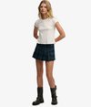 De Mini Geplooide Skort is een prachtig, veelzijdig kledingstuk voor het komende seizoen. Gemaakt van een geweven twill stof met geplooide details en ingebouwde shorts, is deze rok even stijlvol als praktisch.