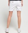 Superdry City-chinoshort voor dames. Deze korte broek is een variatie op de klassieke chinoshort en heeft een knoopsluiting en vier zakken. Afgewerkt met een metalen logobadge boven een van de voorzakken en een logobadge boven een van de achterzakken.