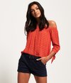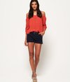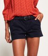 Superdry International Hot-short voor dames. Deze short in chino-stijl heeft vier zakken, een ritssluiting en een riem. De short is afgewerkt met knopen met het Superdry-logo en een Superdry-logopatch boven één van de achterzakken.