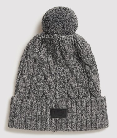 Superdry Jacob-beanie voor heren. Deze gebreide kabelbeanie heeft een geribde omgeslagen boord, een pompon en een Superdry-logolabel op de zoom.