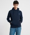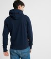 Superdry Collective Loopback-herenhoodie. Update je basics met deze hoodie met een capuchon met trekkoord, geribde boorden en een buidelzak. Afgewerkt met een Superdry-logolabel op de borst en op een van de zijnaden. De Collective-hoodie is perfect om dit seizoen als laagje over een klassiek T-shirt te dragen.