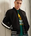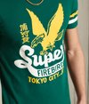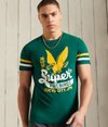 Het lichtgewicht gelaagde Varsity-T-shirt is geïnspireerd op de Amerikaanse universiteitscultuur en heeft een klassieke geribde halslijn, korte mouwen, een grafische print op de voorkant en een kenmerkende logopatch.