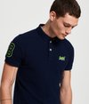 Superdry klassieke piqué herenpolo. Deze klassieke polo heeft korte mouwen, een sluiting met twee knopen, verstevigde zijsplitten in de zoom en een geborduurd Superdry-logo op de borst. Afgewerkt met een geborduurd nummerlogo op een van de mouwen en een Superdry-logolabel op de zoom en een van de mouwen.