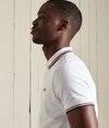 Voor een klassieke look: deze polo van biologisch katoen met korte mouwen en contrasterende strepen is een perfecte aanvulling op je casual garderobe.