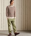 Blijf stijlvol warm met de trui met ronde hals en klassiek patroon. Voorzien van een gestreept ontwerp, een kenmerkende logopatch en een mix van alpacawol. Staat geweldig in combinatie met je favoriete jeans en een jas.